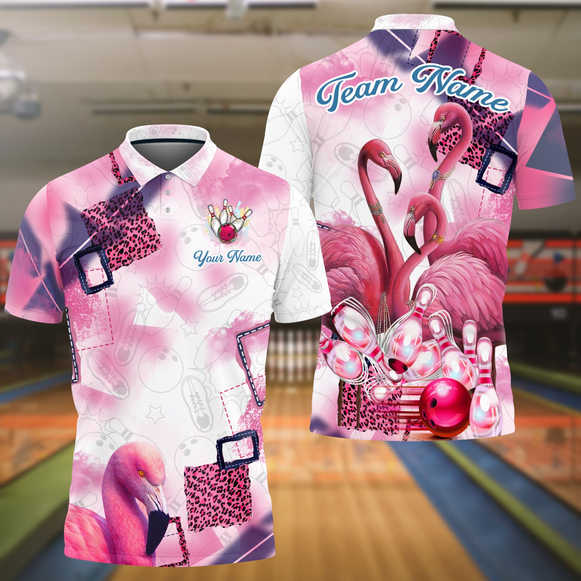 BlueJoses Bowling And Pins Flamingo Style Customized Name, Team Name 3D Shirt
