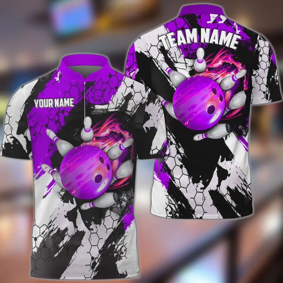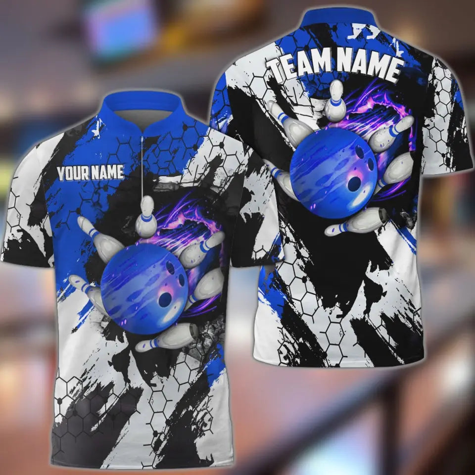BlueJoses Bowling And Pins Hexagram Pattern Multicolor Personalized Name, Team Name 3D Shirt