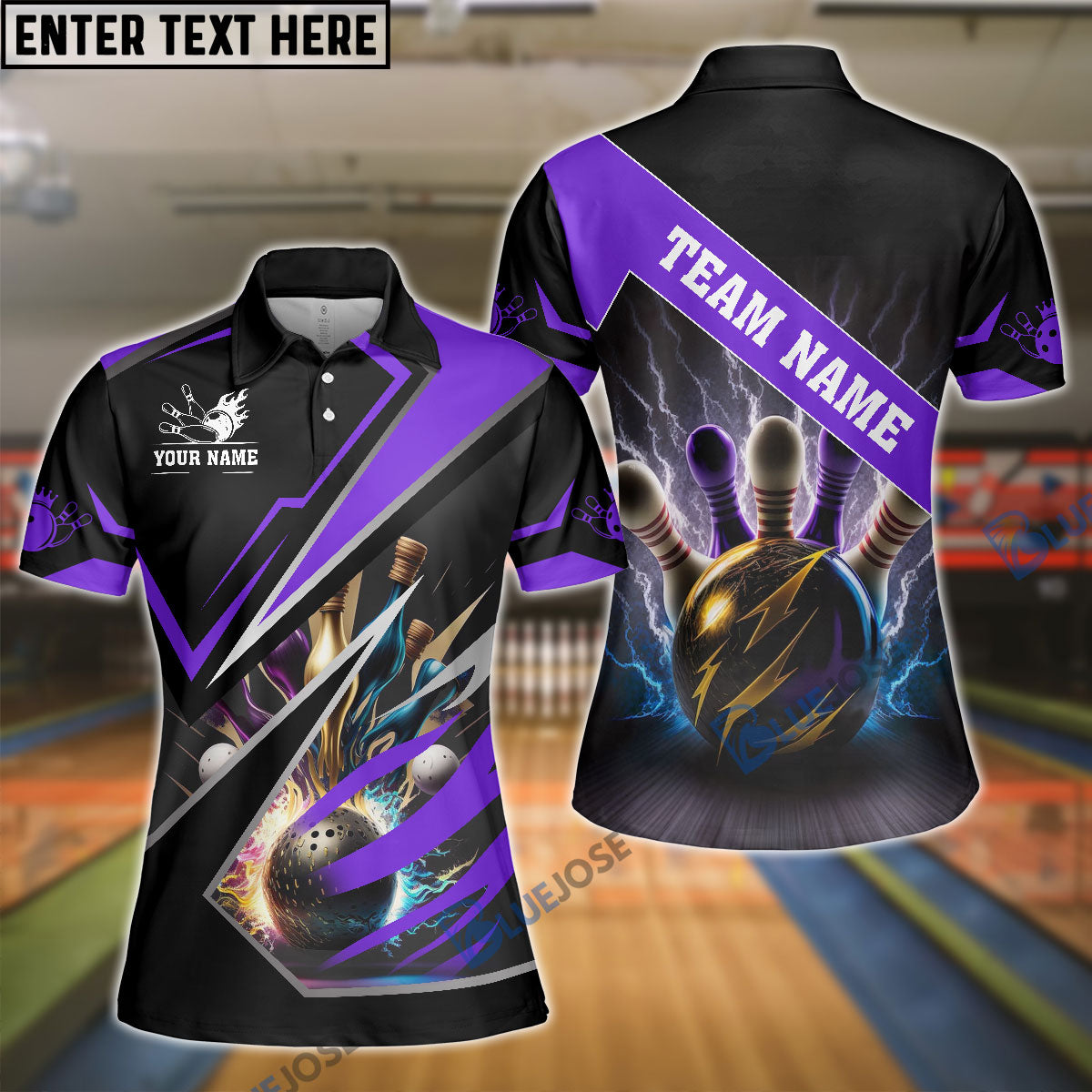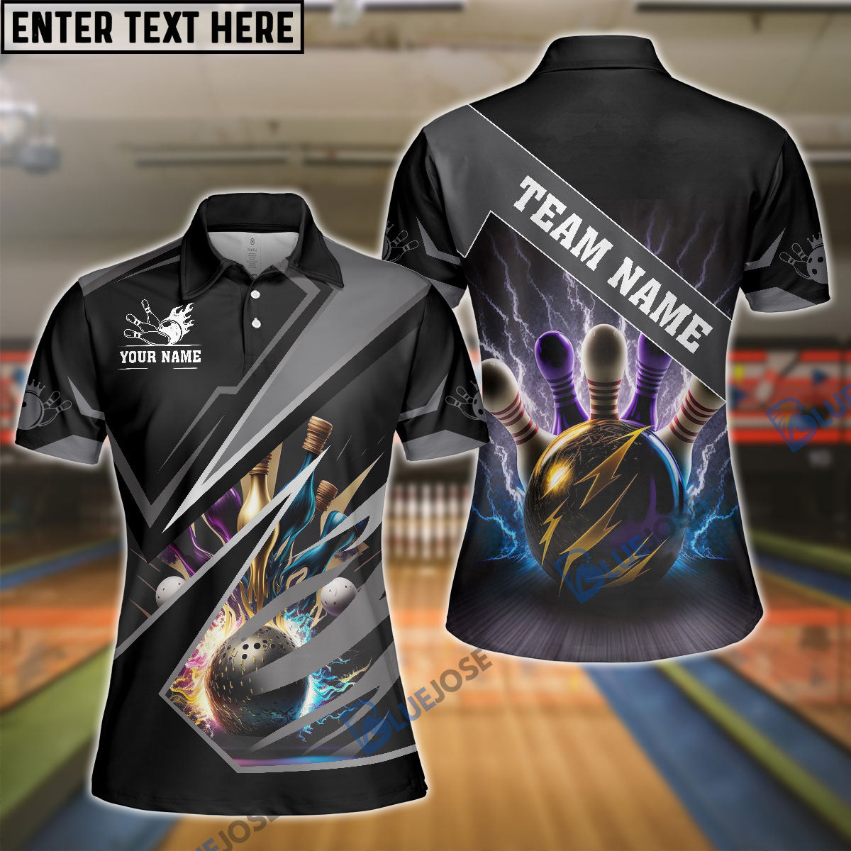 BlueJoses Bowling And Pins Premium Multicolor Customized Name 3D Shirt for Women (4 Colors)