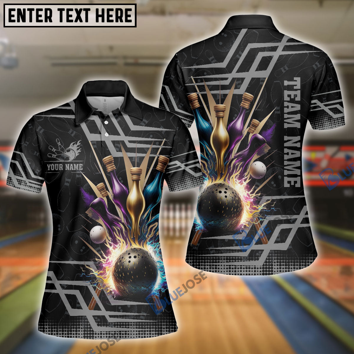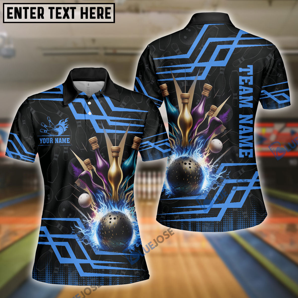 BlueJoses Bowling And Pins Royal Multicolor Option Customized Name 3D Shirt for Women (4 Colors)