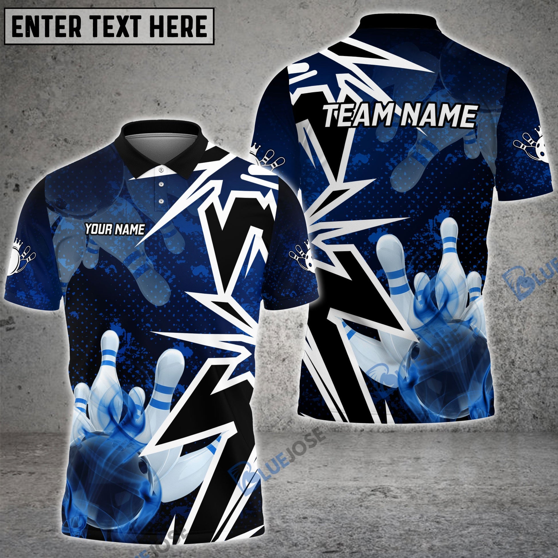 BlueJoses Bowling And Pins Smoke Premium Customized Name 3D Shirt (4 Colors) Personalized Shirts For Bowling Players