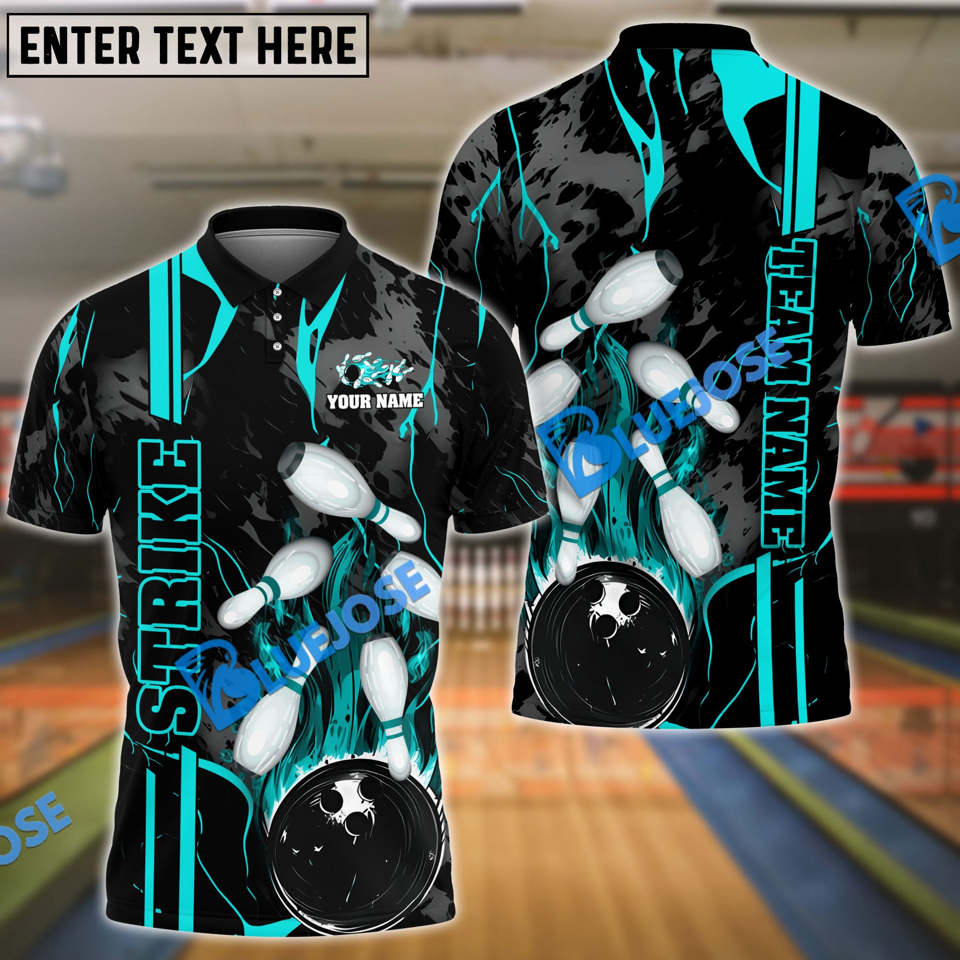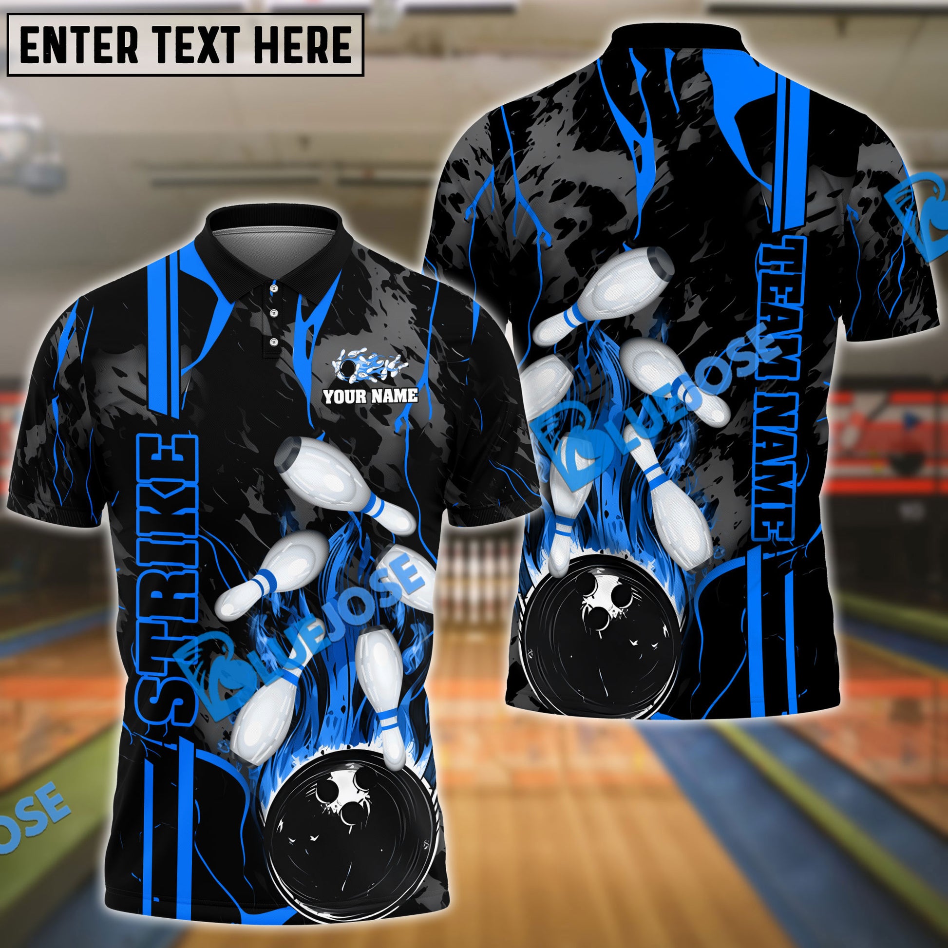 BlueJoses Bowling And Pins Strike The Blood Multicolor Customized Name 3D Shirt ( 4 Colors )