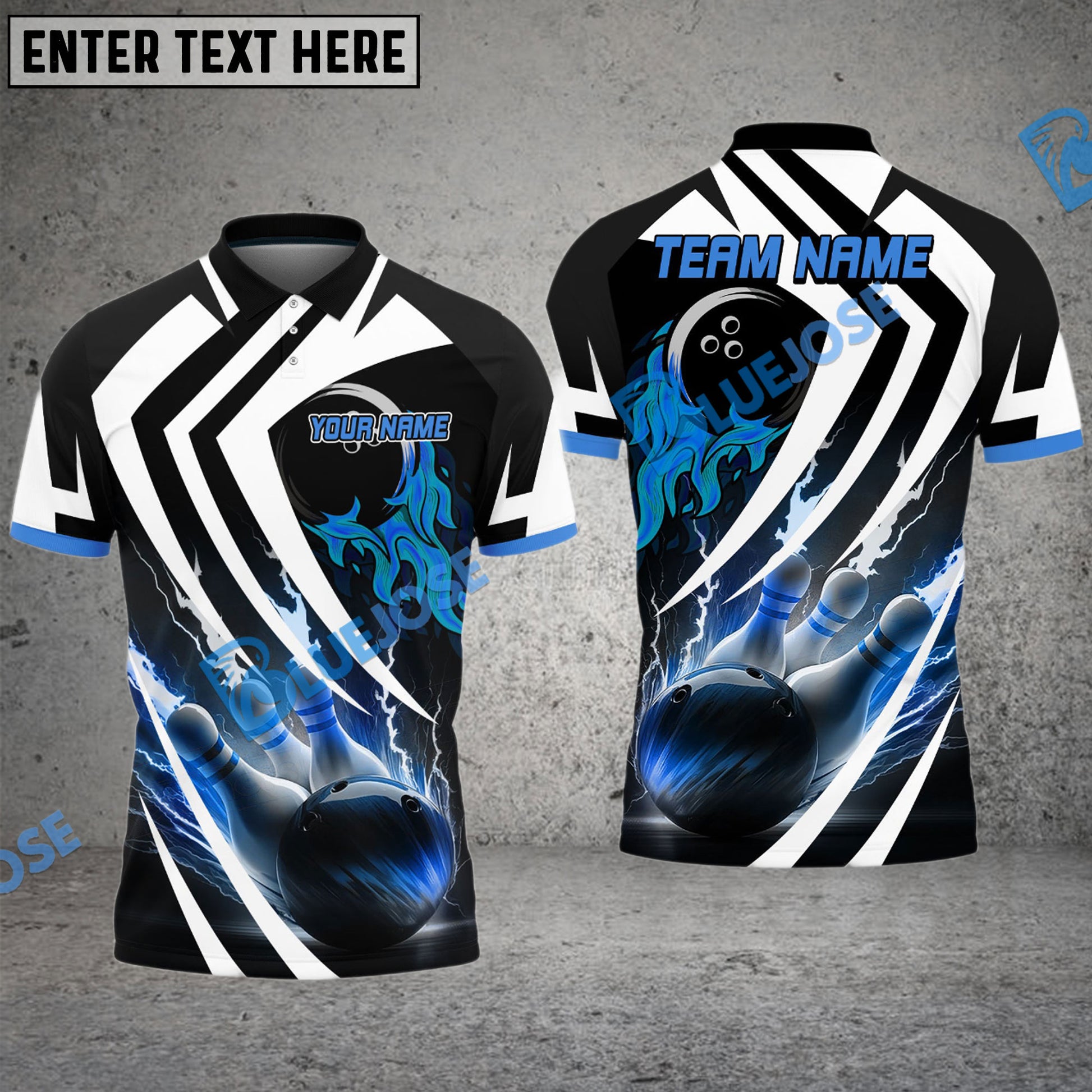 BlueJoses Bowling And Pins Thundering Strike Multicolor Customized Name 3D Shirt ( 4 Colors )