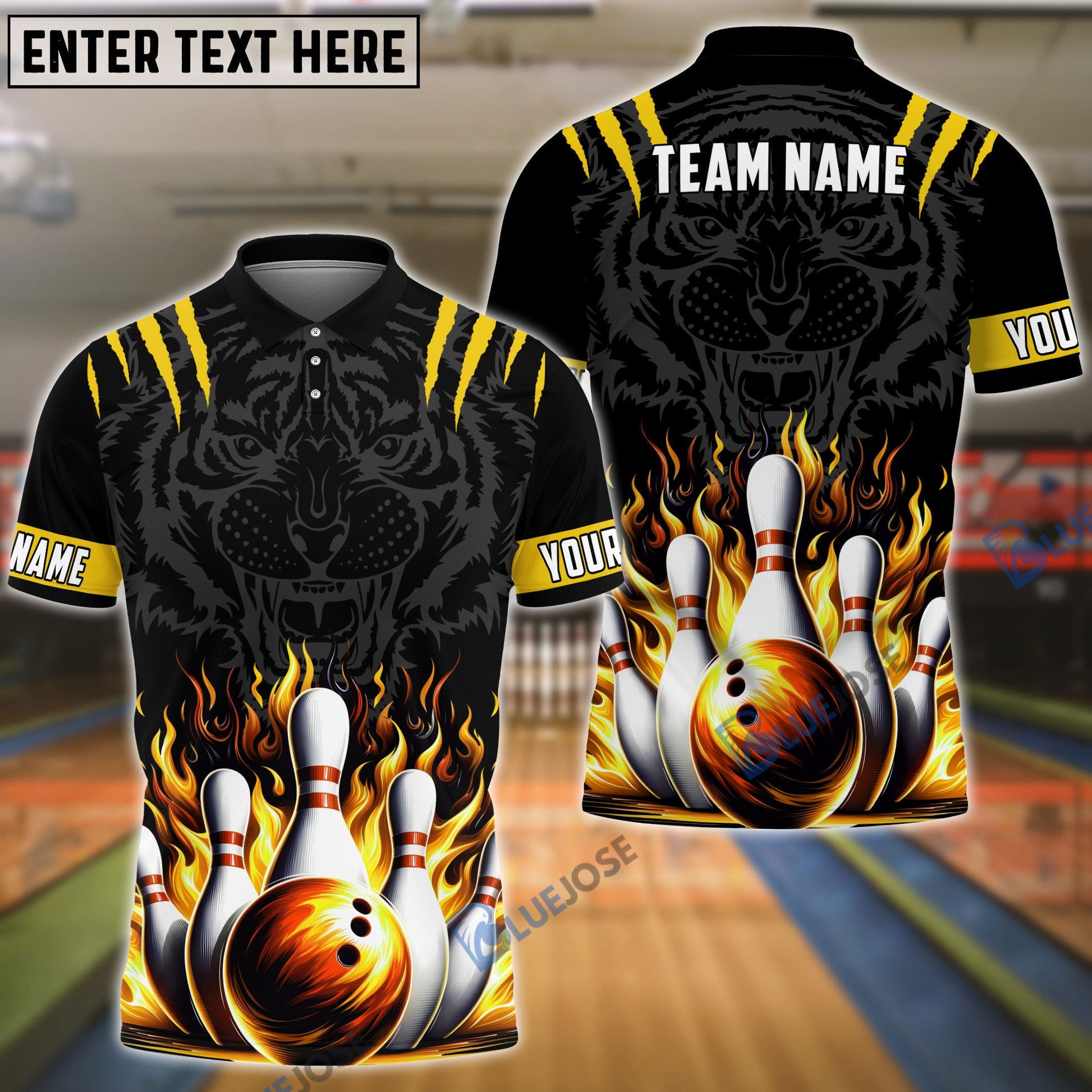 BlueJoses Bowling And Pins Tiger Pattern Customized Name, Team Name 3D Shirt (5 Colors)