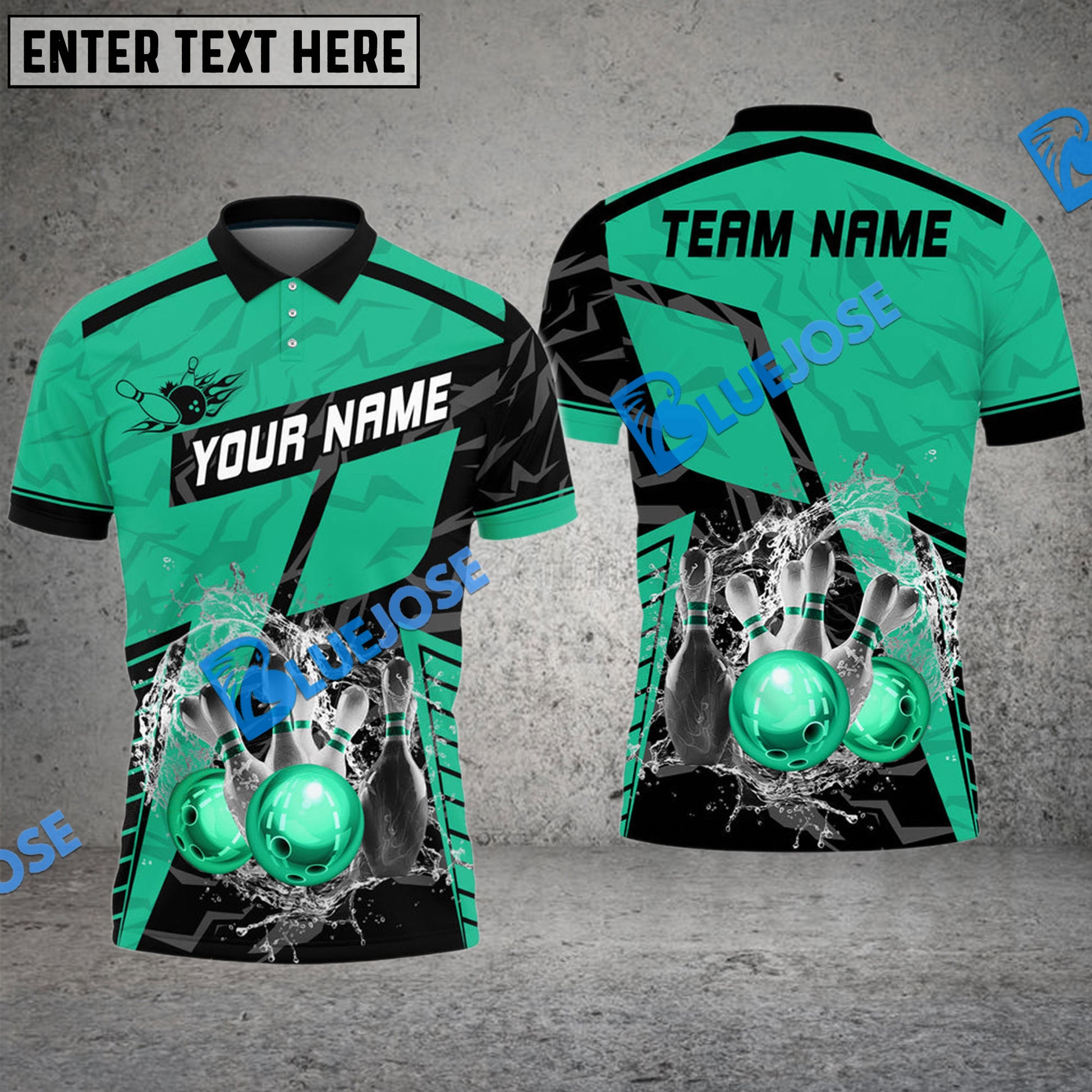 BlueJoses Bowling And Pins Water Splash Customized Name 3D Shirt ( 6 Colors)