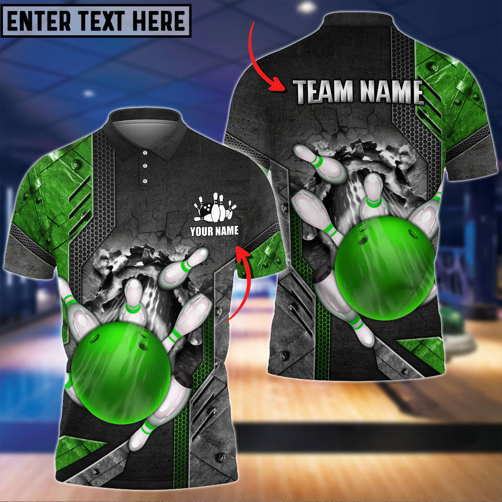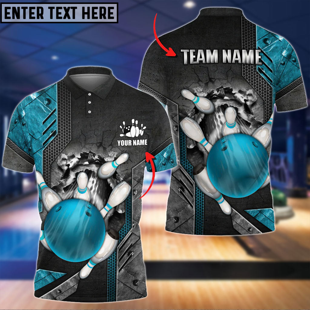 BlueJoses Bowling Ball And Pins Crack Metalic Multicolor Personalized Name 3D Shirt