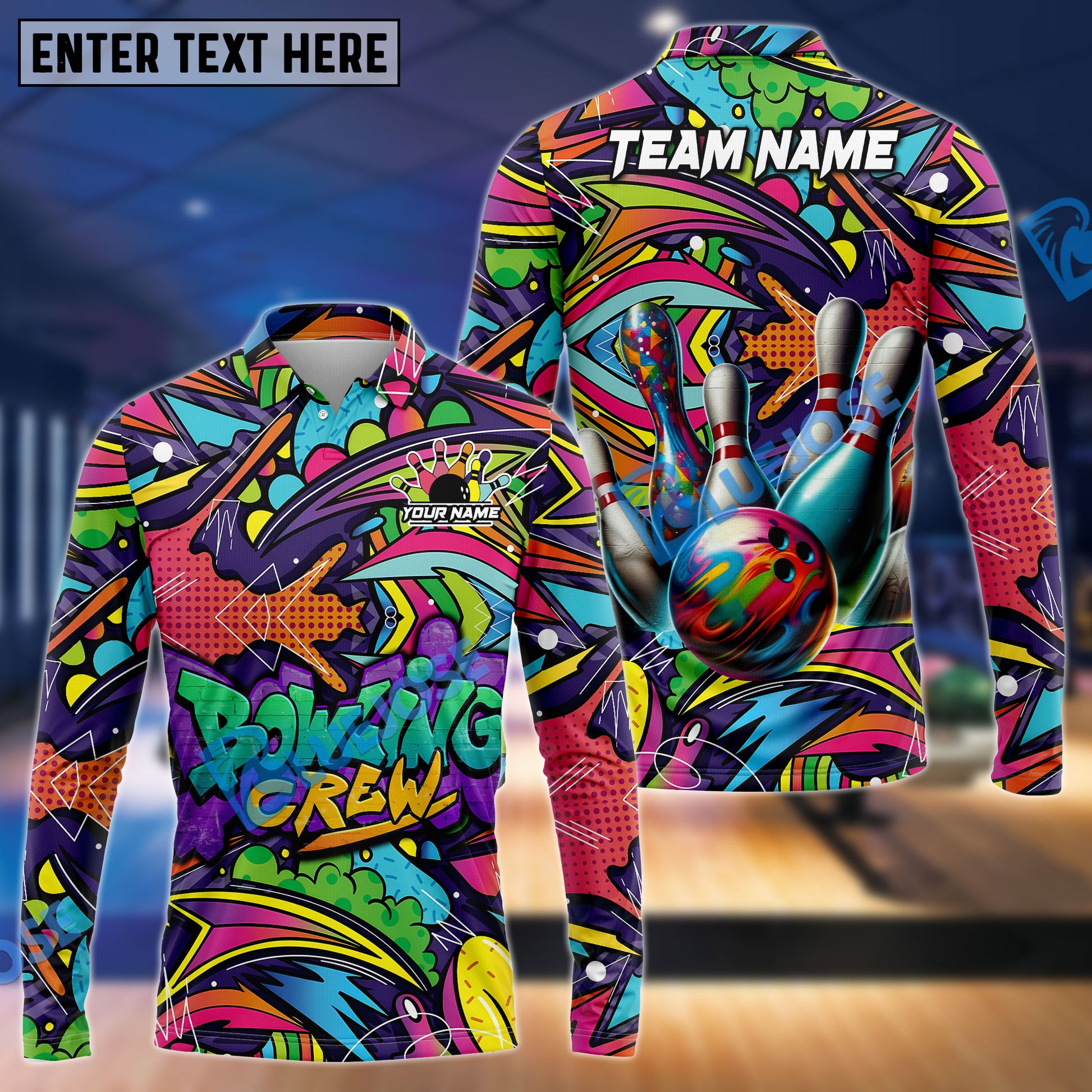 BlueJoses Bowling Graffiti Crew Customized Name, Team Name 3D Shirt