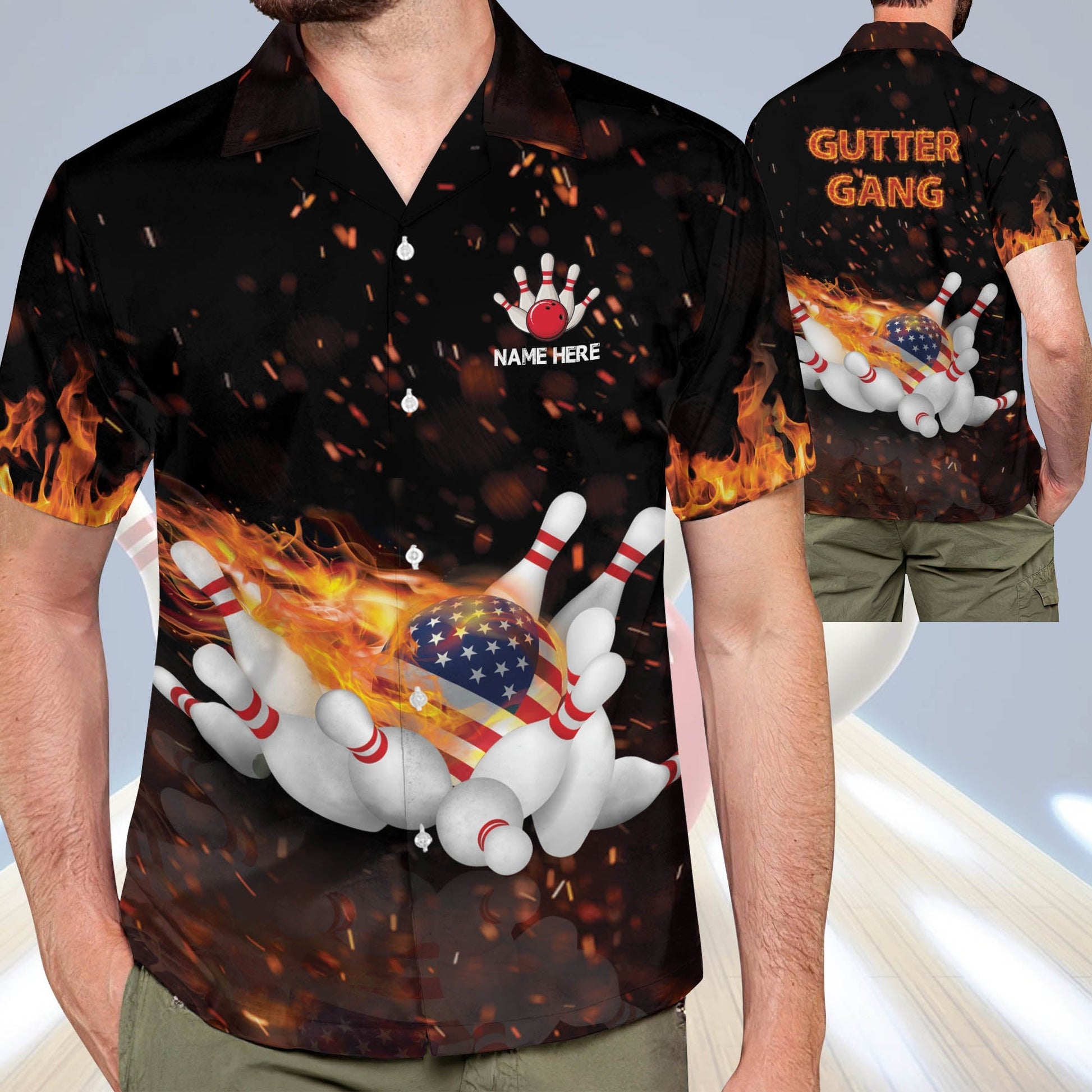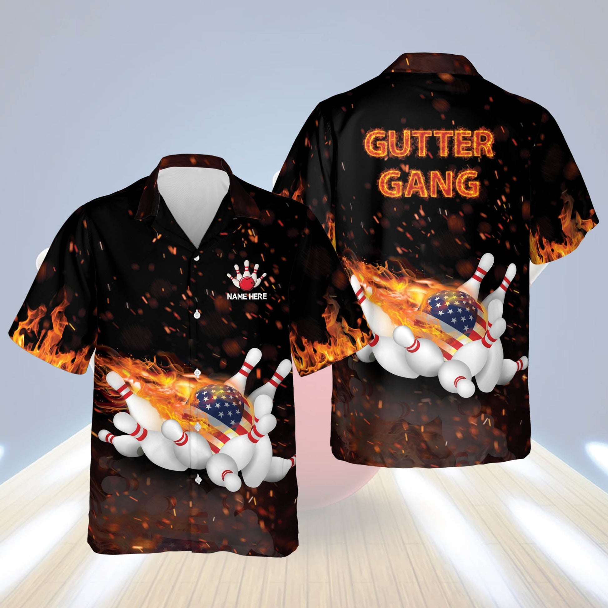 BlueJoses Flame Bowling Gutter Gang Personalized Name Hawaiian Shirt
