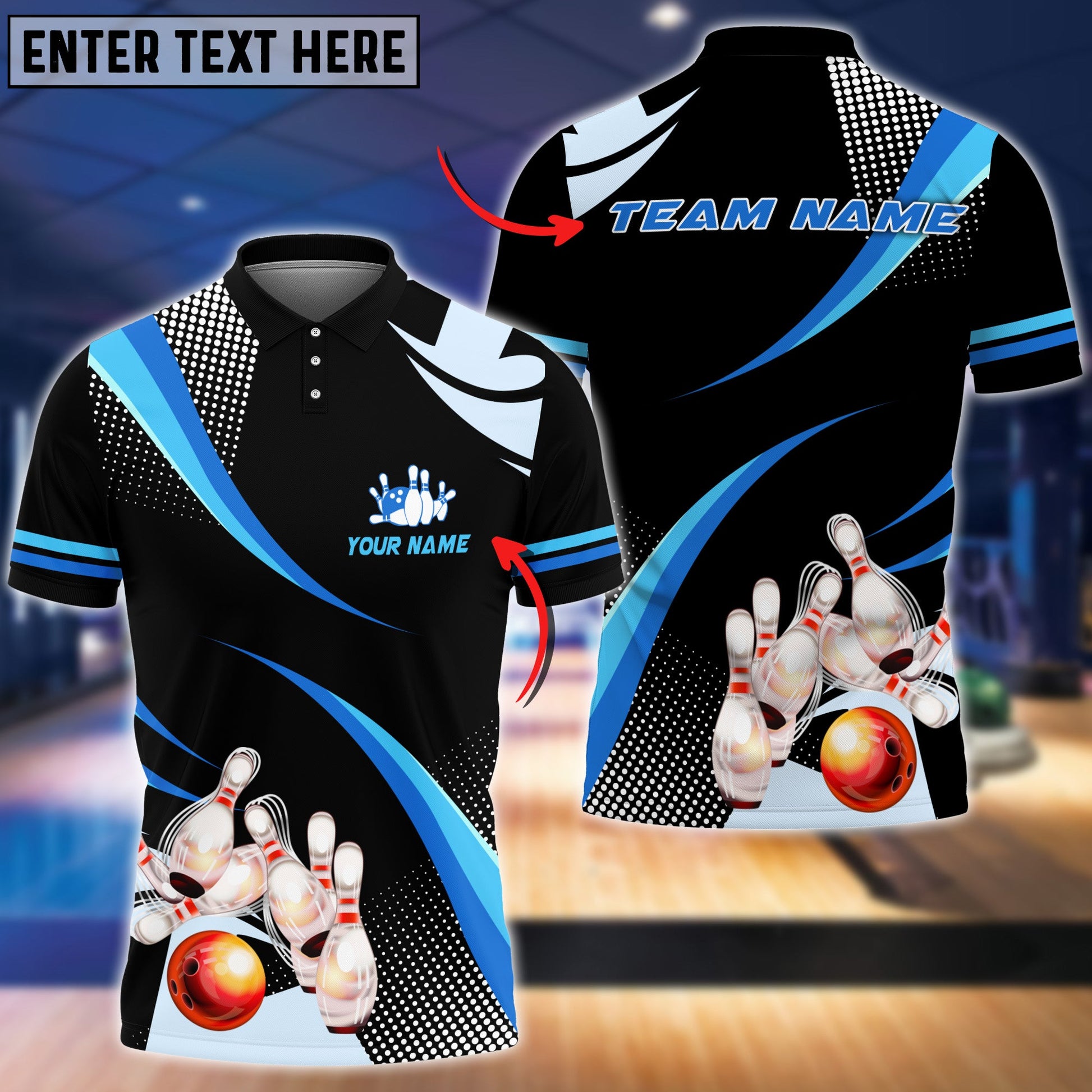 BlueJoses Orange Bowling Ball And Pins Blue Pattern Classic Customized Name All Over Printed Shirt