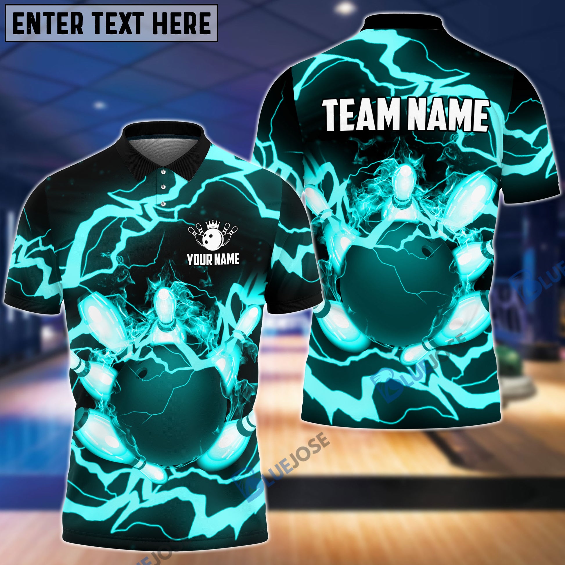 BlueJoses Power of Thunder Bowling Ball Break Pins Personalized Name and Team Name 3D Shirt (4 Colors)