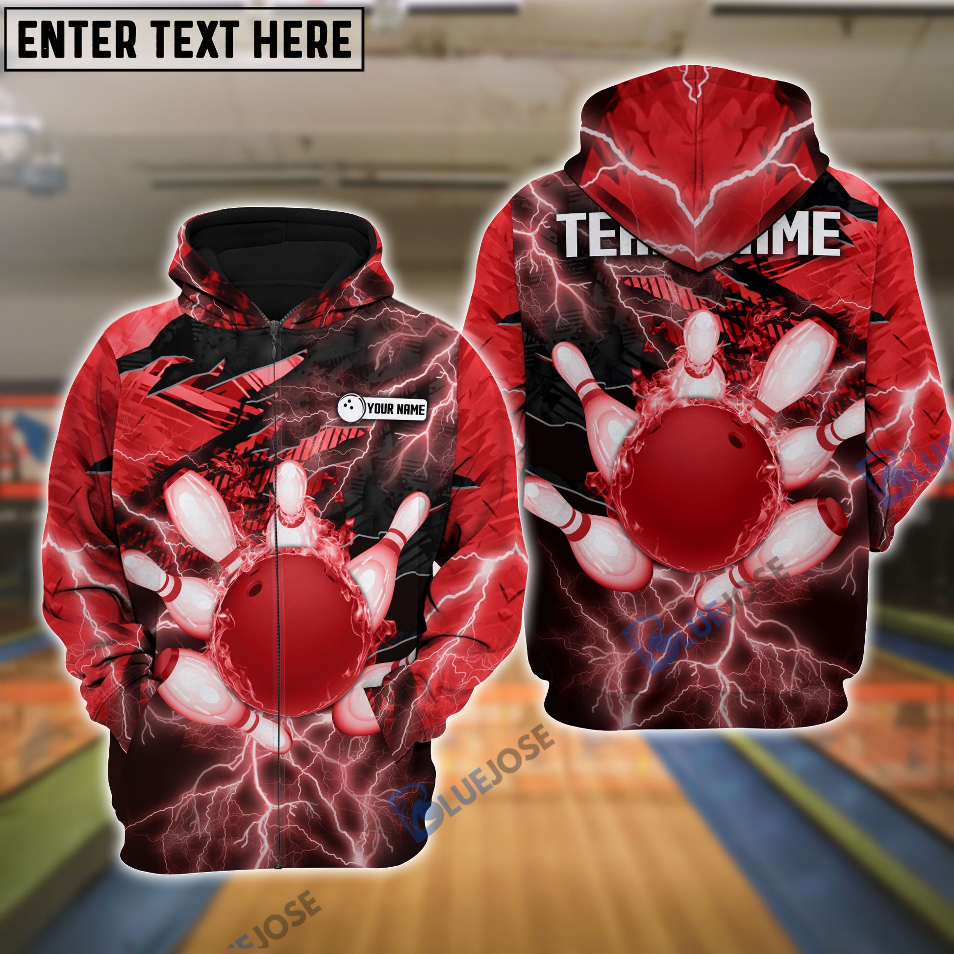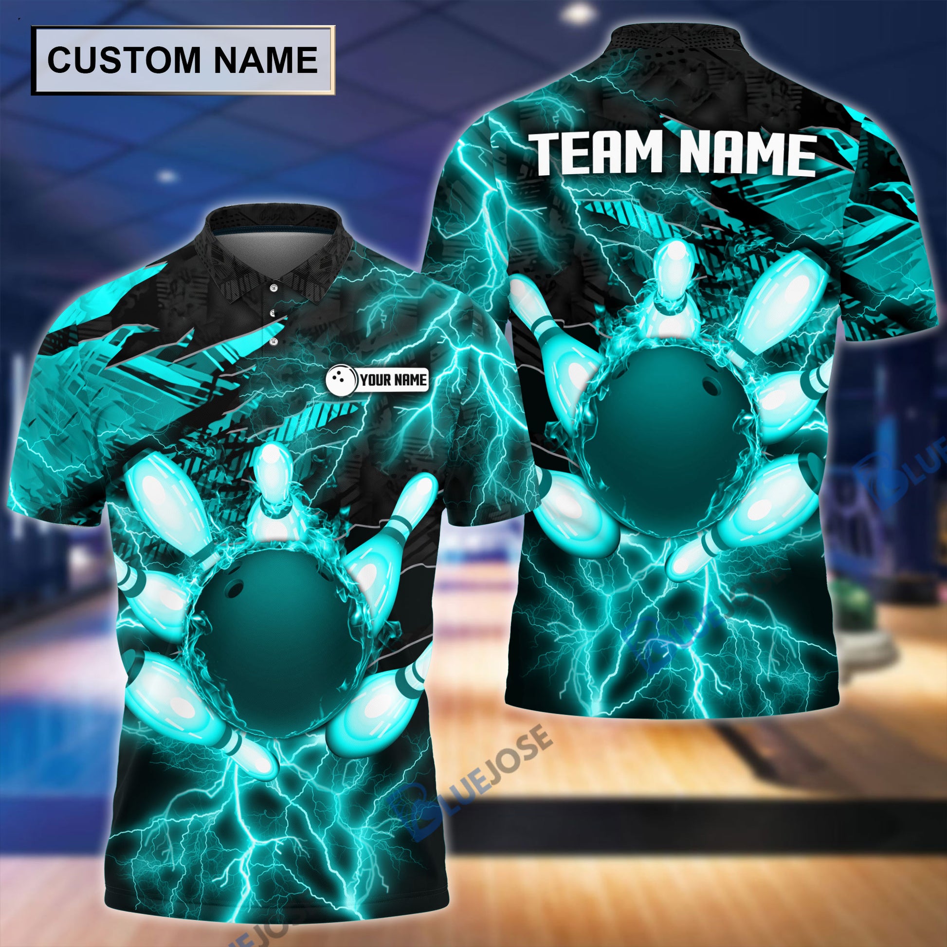 BlueJoses Thunder Power Bowling And Pins Personalized Name Team Name 3D Shirt