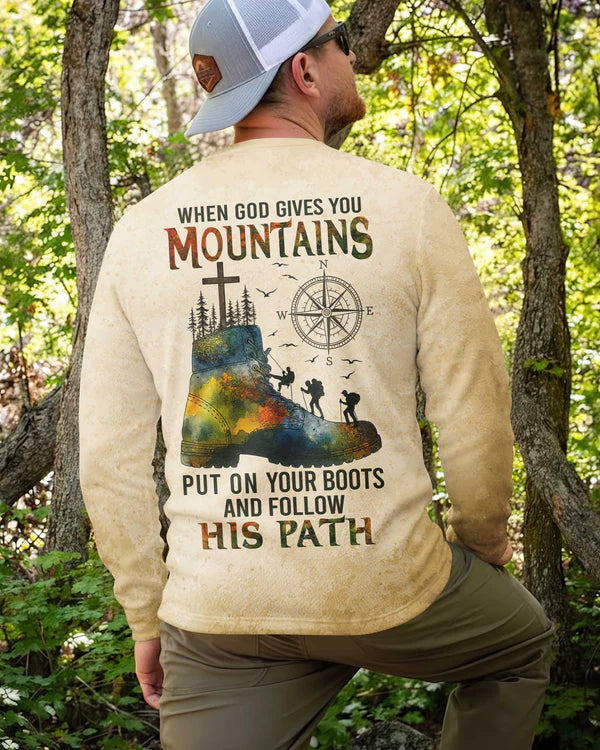BlueJose When God Gives You Mountains Personalized Hiking Shirt - Sand