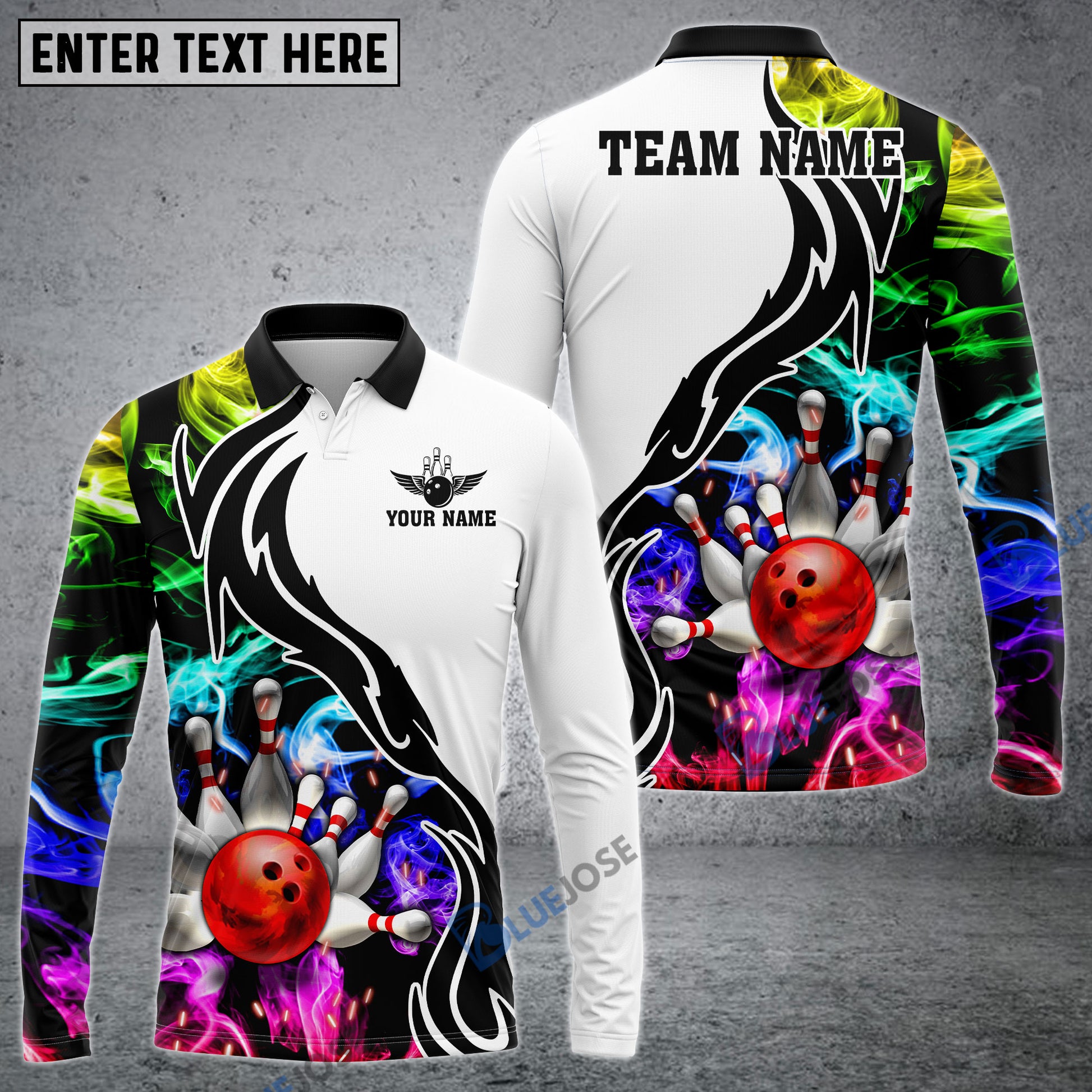 BlueJoses Bowling And Pins Multicolor Smoke Pattern Customized Name 3D Shirt