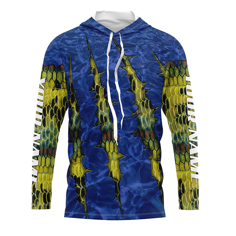 Bluejose Largemouth Bass Fishing Scales Blue Camo Long Sleeve Fishing Shirts, Personalized Bass Fishing