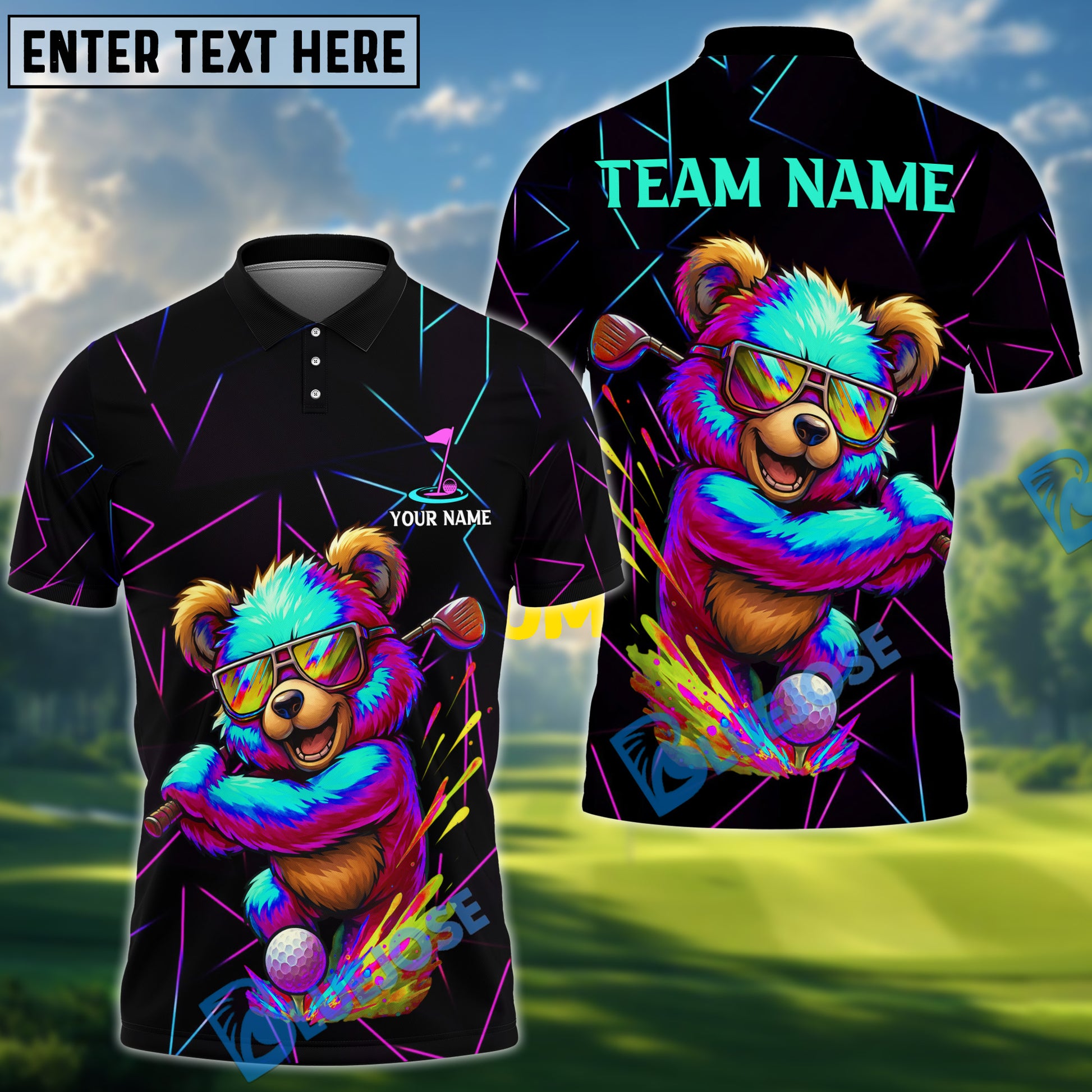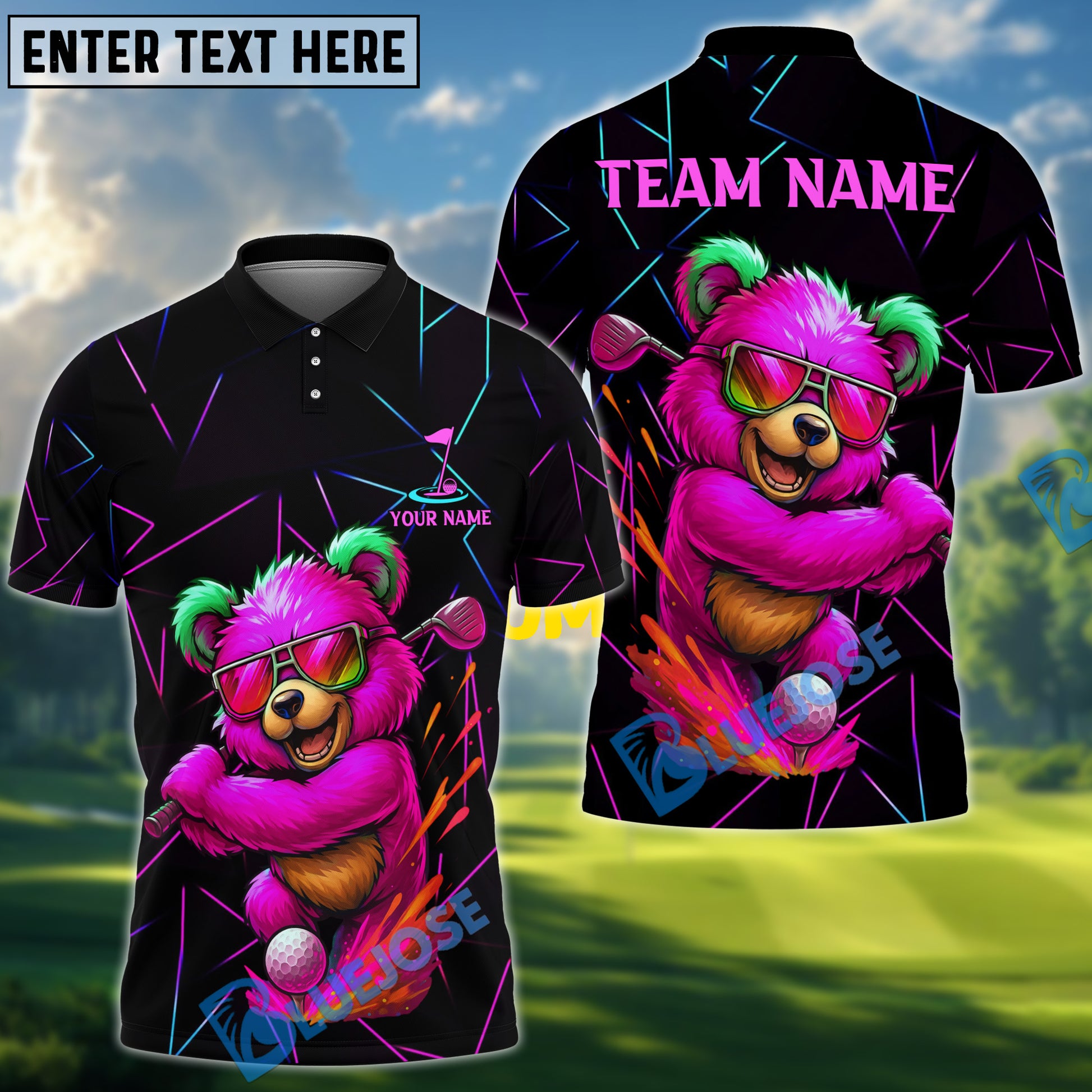 BlueJose Neon Bear Golf Polo Shirt, Customized Name & Team Name 3D Shirts (4 Colors)