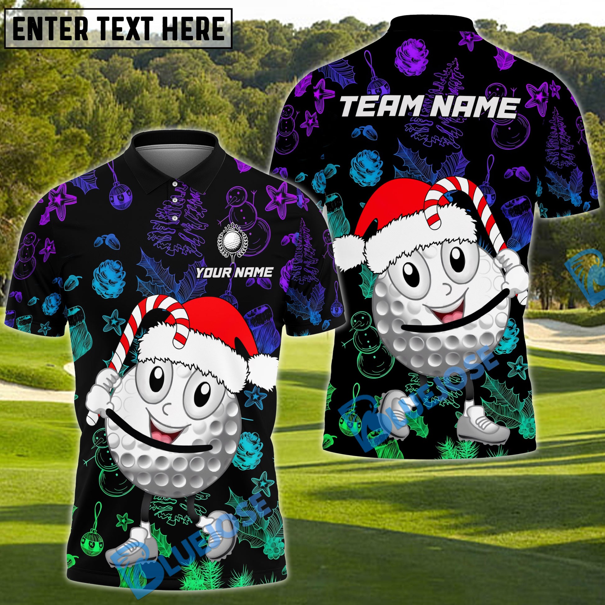 BlueJose Merry Swing Christmas Golf Polo Shirt, Custom Name & Team Name 3D Shirts