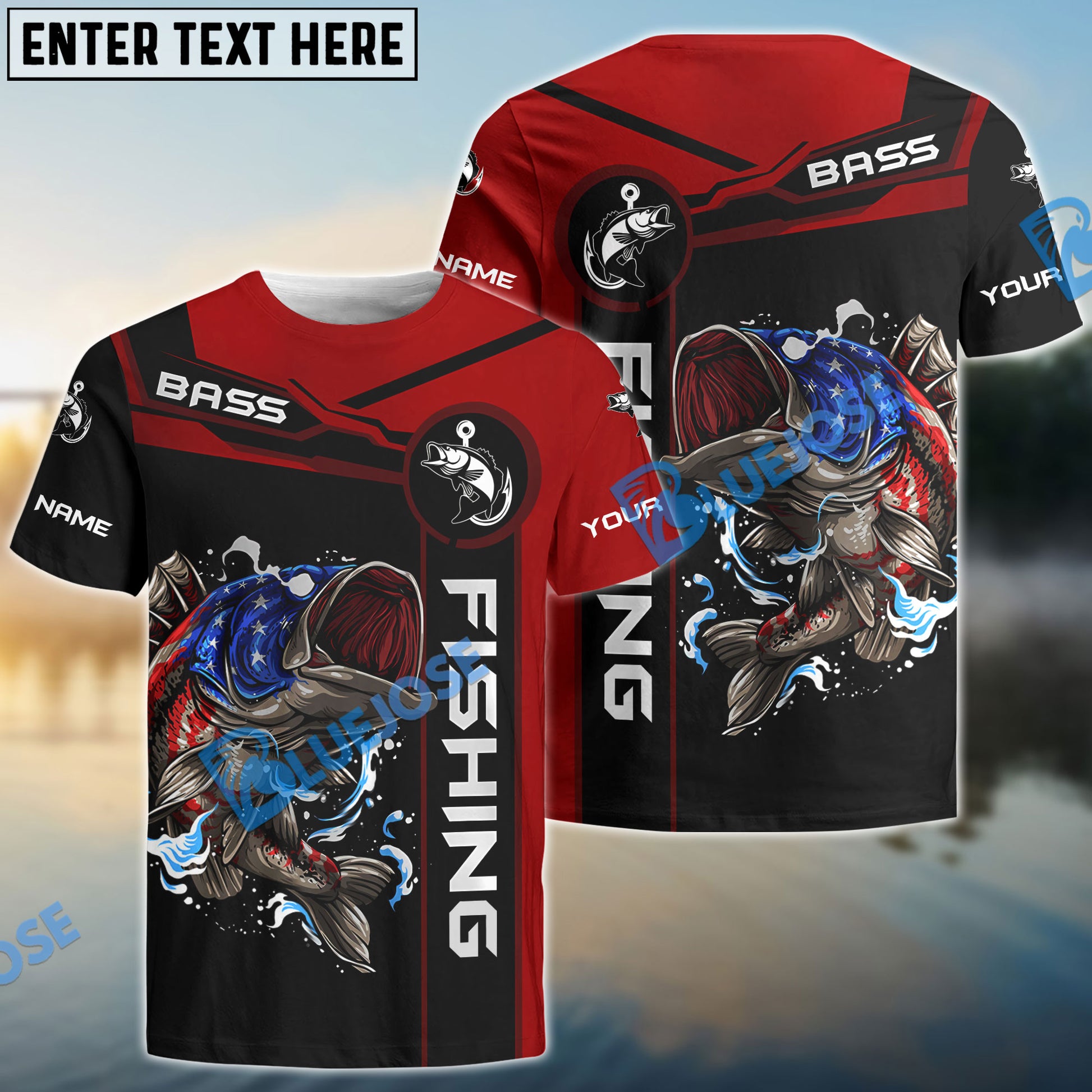 BlueJose Largemouth Bass Fishing American Flag Patriotic Fishing Custom Name Fishing Shirts