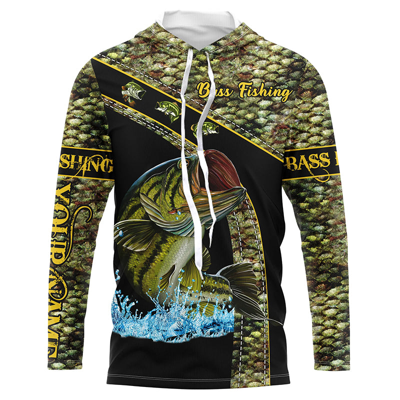 Bluejose Largemouth Bass Fishing Green Bass Scales Custom Name Bass Fishing Long Sleeve, Long Sleeve Hoodedâ