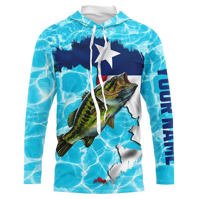 Bluejose Texas Bass Fishing Texas Flag Custom Name Blue Water Camo Fishing Long Sleeve, Long Sleeve Hooded