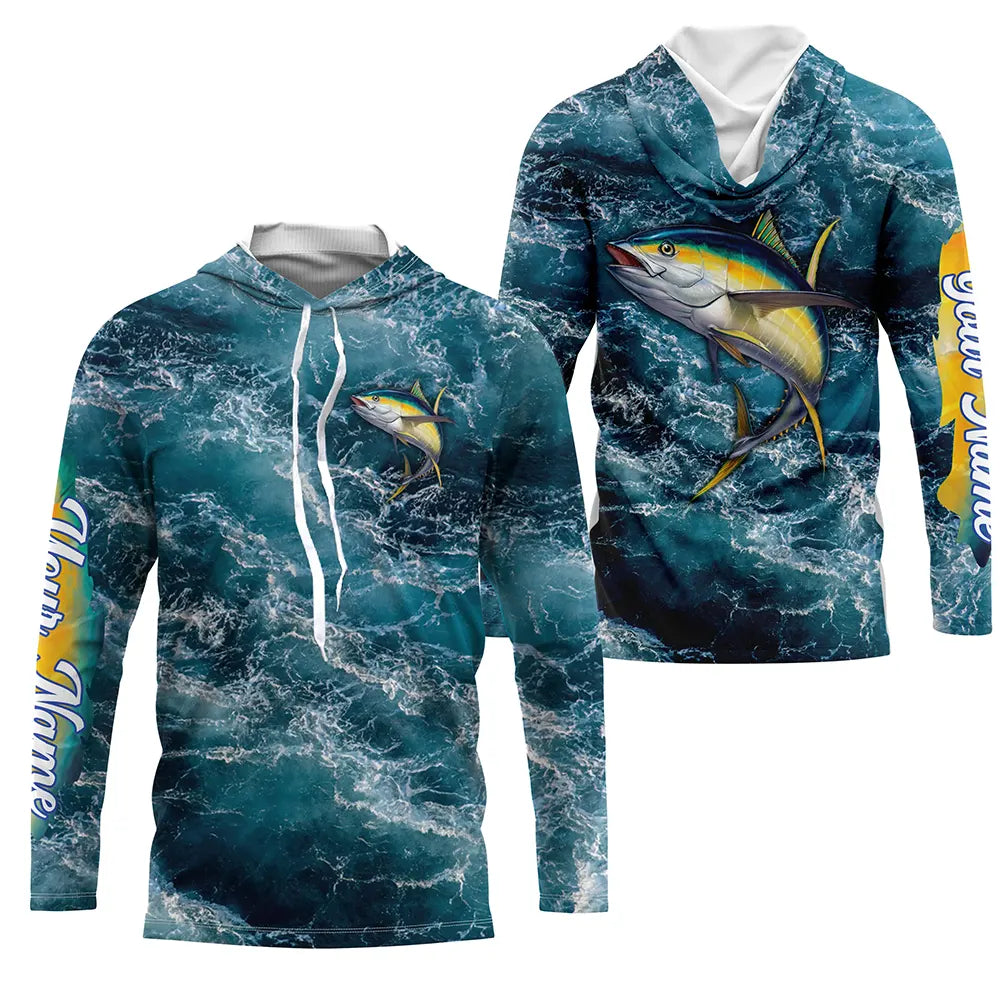 Bluejose Tuna Saltwater Fishing Custom Blue Sea Wave Fishing Tournament Shirt | Long Sleeve, Long Sleeve Hooded