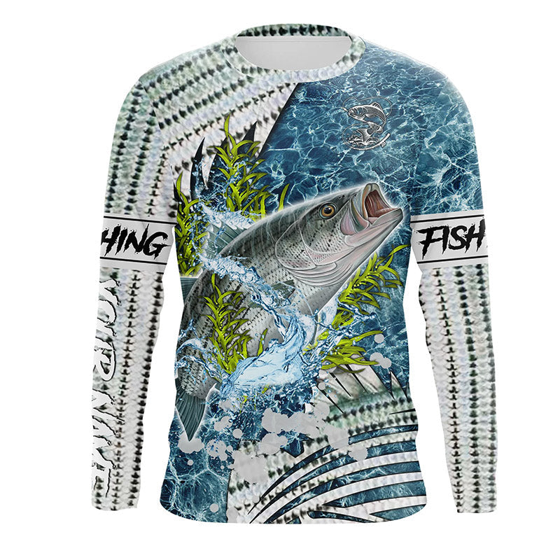 Bluejose Striped Bass Fishing Custom Scales Water Camo Fishing Shirt | Long Sleeve, Long Sleeve Hooded