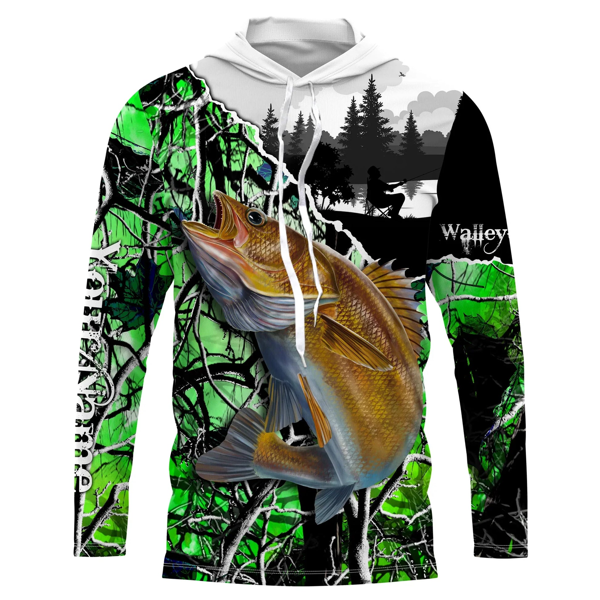 Bluejose Custom Walleye Fishing Green Camo Tournament Fishing Jerseys, Walleye