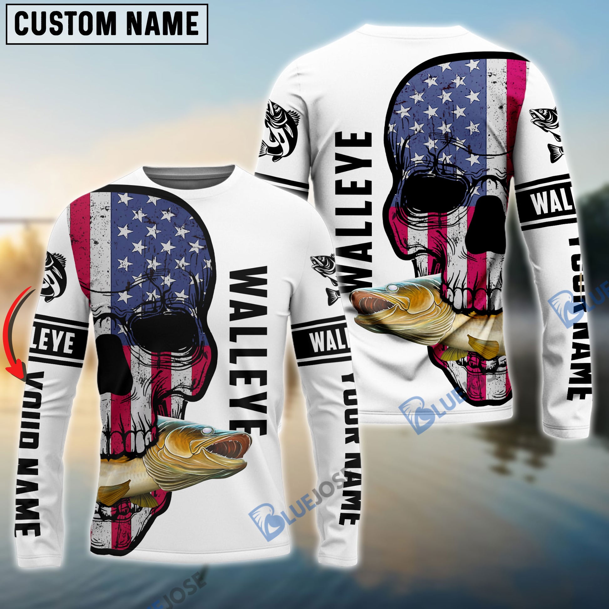 Bluejose Walleye Fishing American Flag Fish Reaper Custom Name 3D Shirts