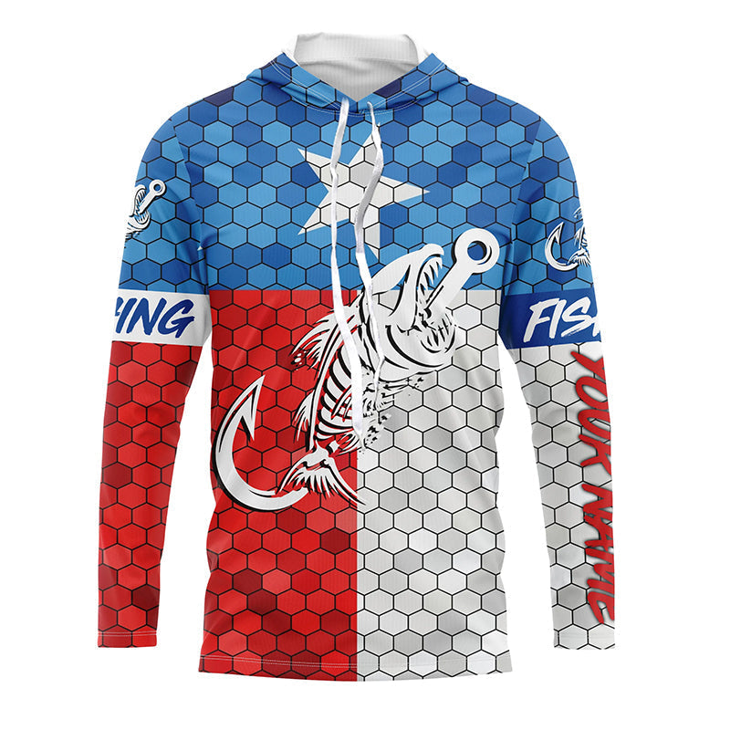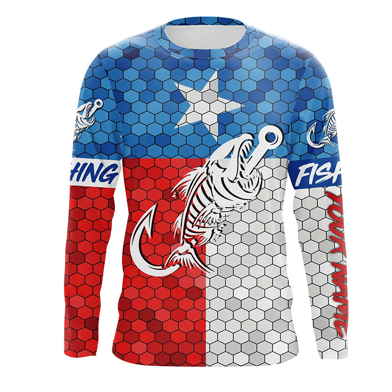 Bluejose Texas Fishing Fish Hook Skull Custom Name 3D Long Sleeve Fishing Shirts