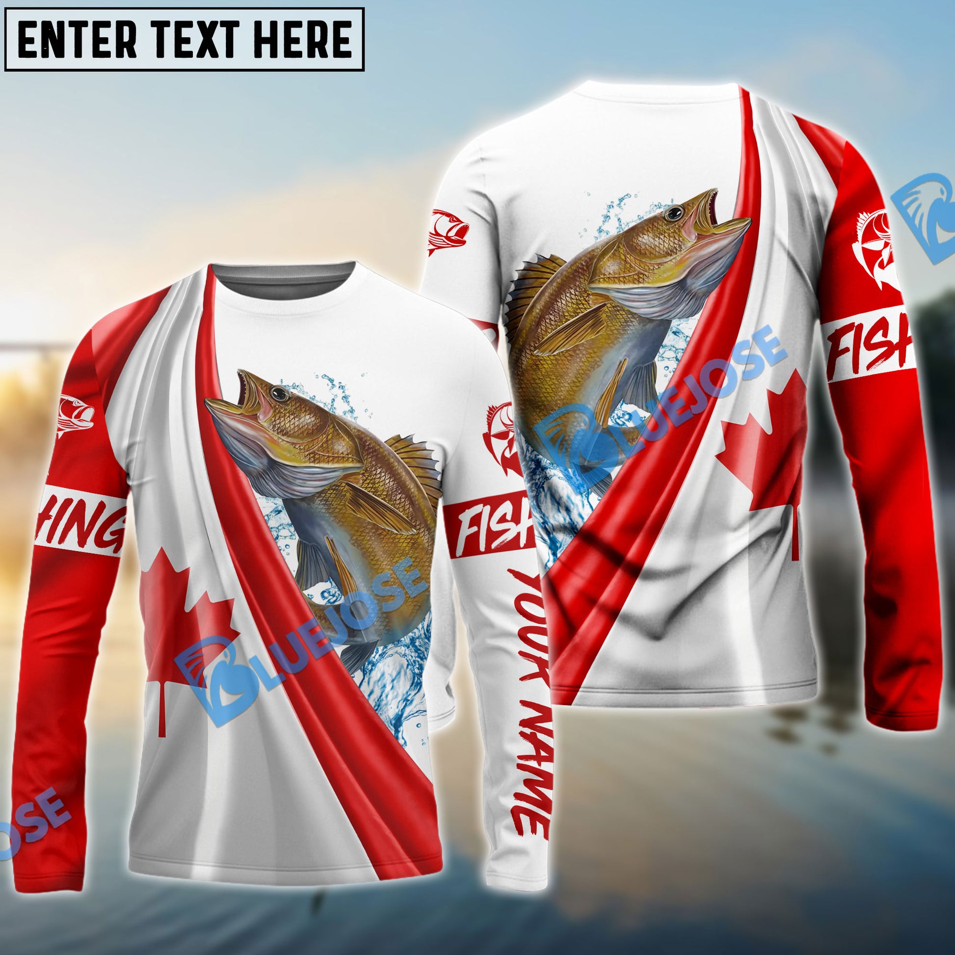 Bluejose Canadian Flag Patriotic Walleye Fishing Custom Name 3D Long Sleeve Fishing Shirts