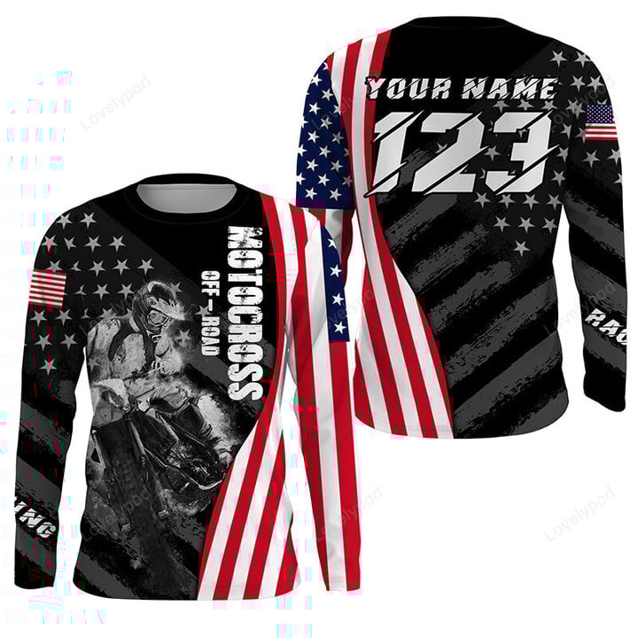 BlueJose Custom Dirt Bike Patriotic Motocross Off-Road American Flag Extreme Mx Racing 3D Shirt