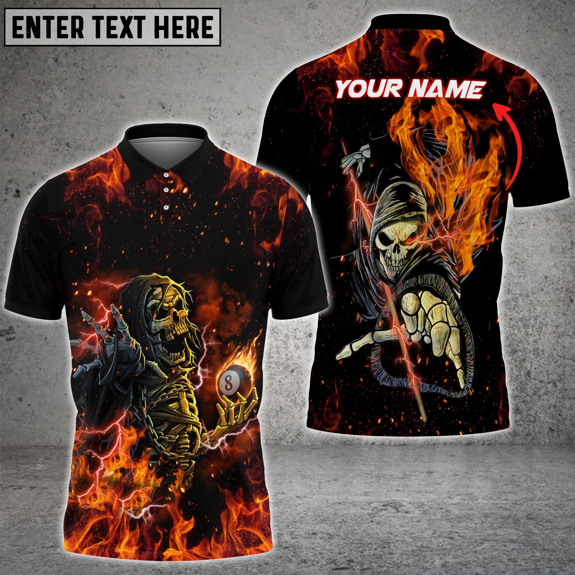 BlueJose Skull Fire Billiard Balls Fire Personalized Name Hawaiian Shirt