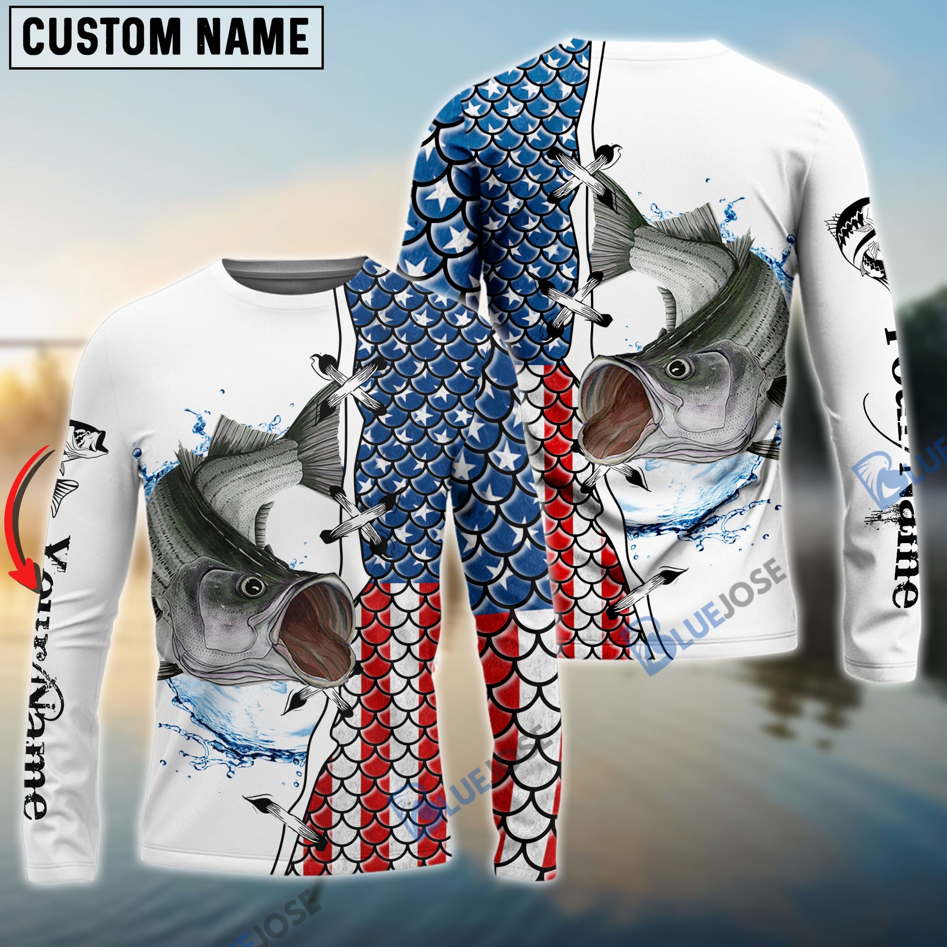 Bluejose Striper Striped Bass Fishing American Flag Patriotic Personalized Name 3D Shirts